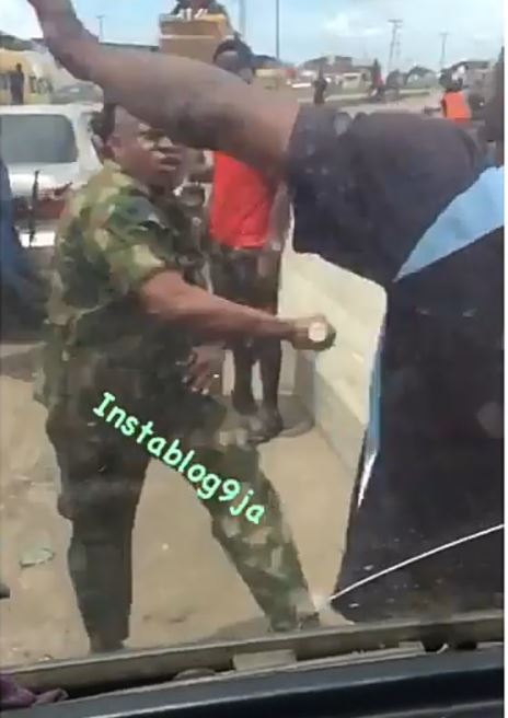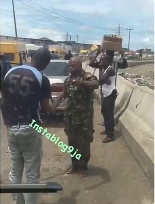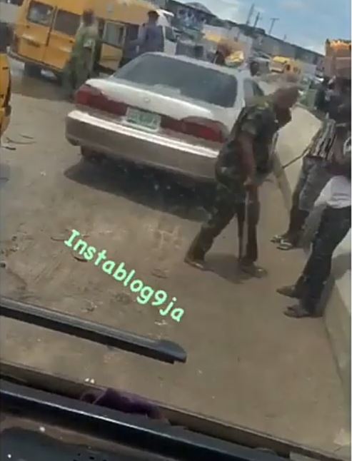 Irate Soldier Flogs Driver, Shatters His Window In Lagos (Photos)